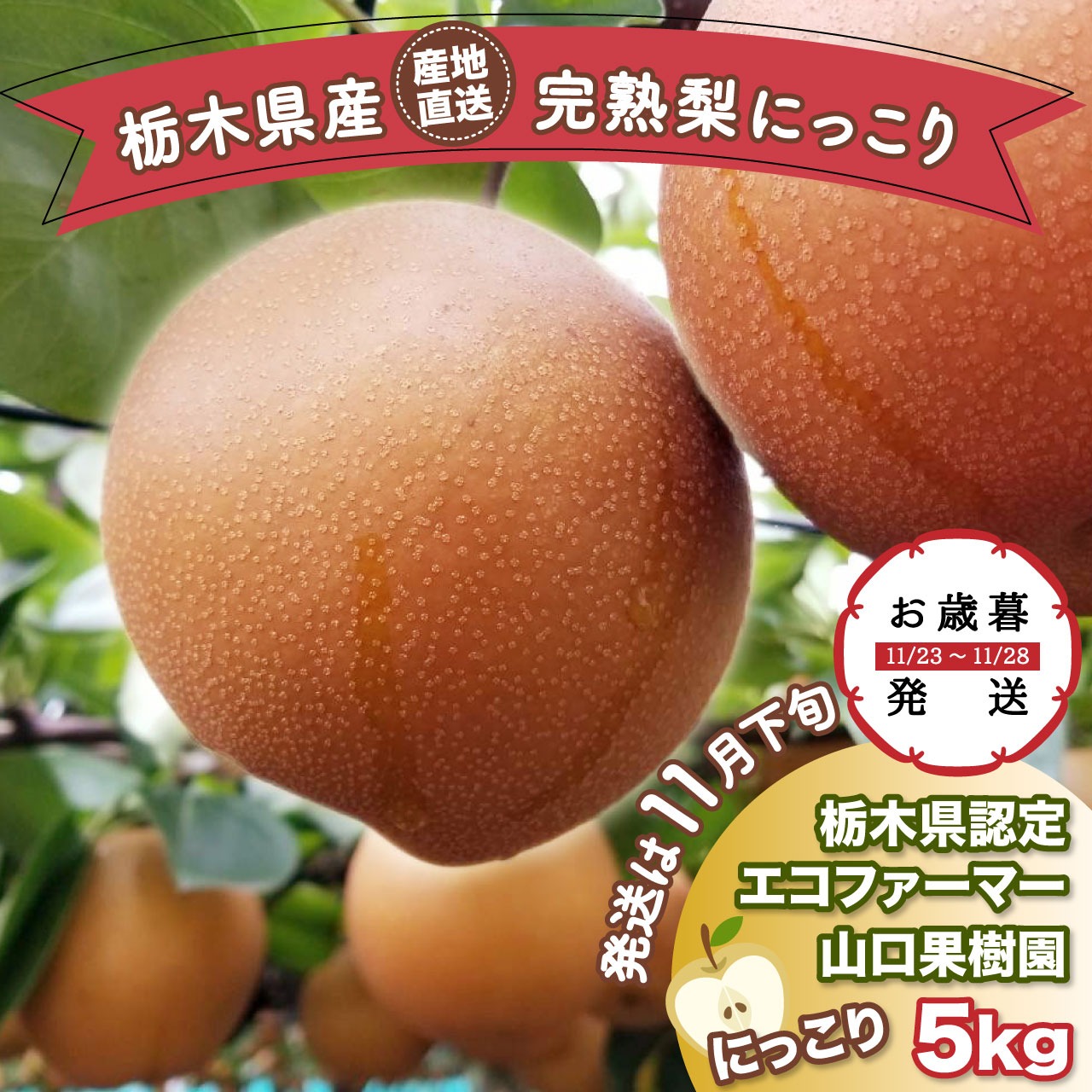 現在「お歳暮 完熟梨 にっこり」と「キウイフルーツ【東京ゴールド】」数量限定で販売中です。